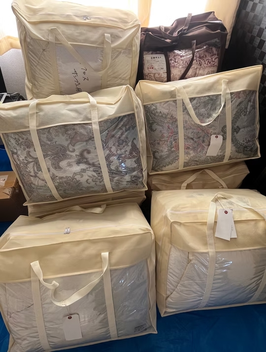羽毛リフォームは注文頂いた後、工場到着してから おおよそ10日〜20日で仕上がります。 冬場はもちろん弊社の羽毛布団を貸し出します。 年間おおよそ1000~2000枚の羽毛布団リフォームをしています。また不要な布団の引き取りや、押し入れに入り切らない布団の保管等も行なっています。 保管の際は洗浄してお返しさせて頂きます。 お住まいの地域によりますが、弊社屋号『関東インテリア』の名の通り、関東地方お住まいの方にはご自宅まで集荷にお伺いも可能です。